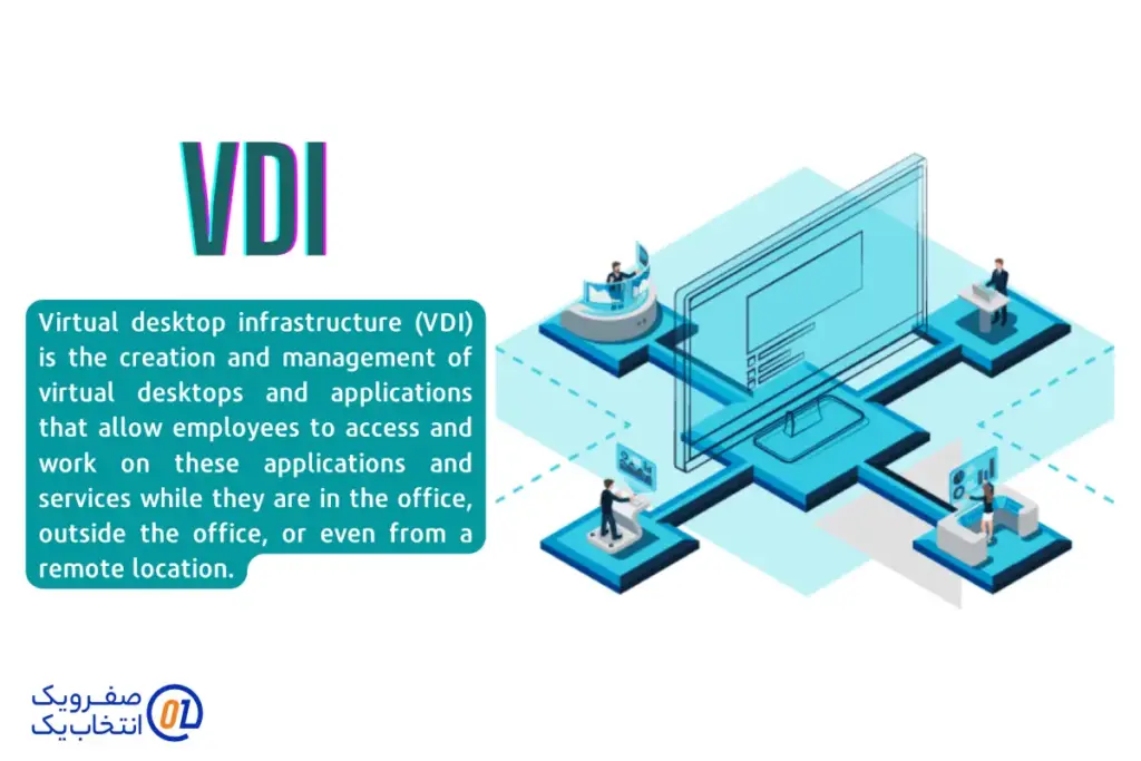 VDI به سازمانها این امکان را می دهد تا محیط دسکتاپ (شامل سیستم عامل، نرم افزارها و داده ها) را به جای نصب روی کامپیوترهای محلی، به صورت متمرکز روی ماشینهای مجازی (VM) در یک سرور قدرتمند، میزبانی و مدیریت کنند. کاربران با استفاده از دستگاههای خود (مانند لپتاپ شخصی، تبلت یا تین کلاینت) و از طریق اینترنت به این دسکتاپهای مجازی دسترسی پیدا میکنند.